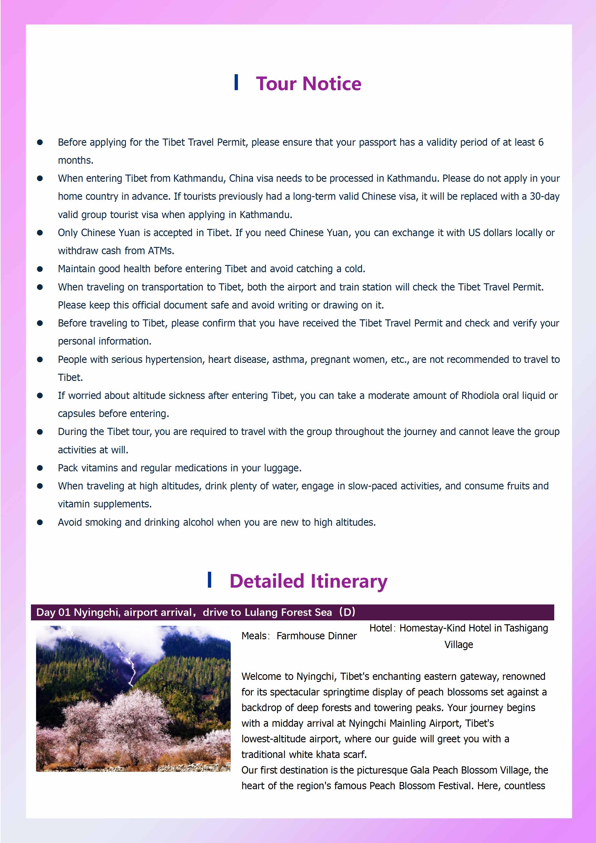 8 days Nyingchi - Pomi - Lhasa - Shigatse tour(Peach Flower Festival )